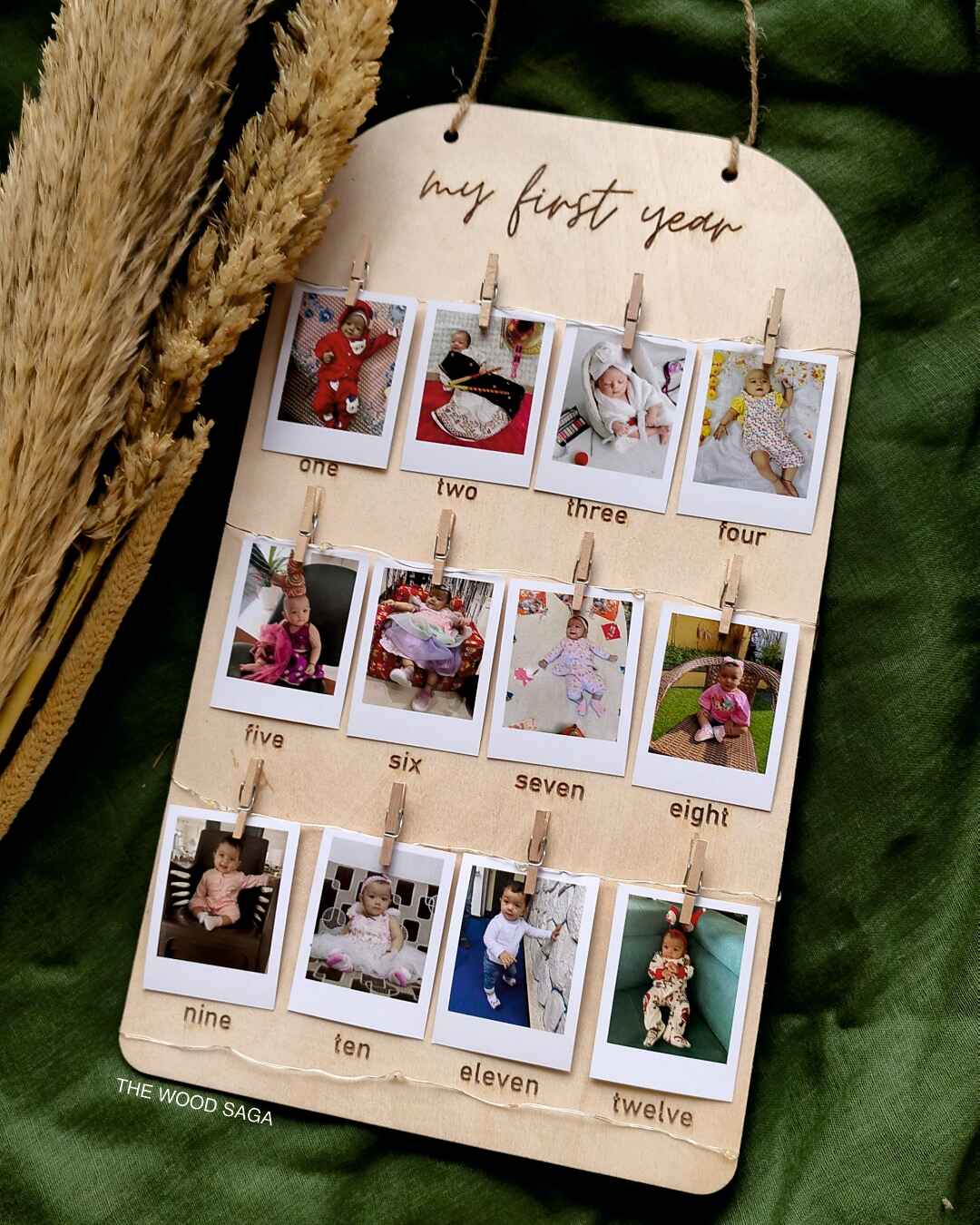 Celebrate the journey of your baby’s first year with this beautifully crafted frame. Designed to hold 12 precious photos, from one month to twelve months, this frame captures each milestone, from the first smile to the first steps. This timeless keepsake is not just a photo frame; it’s a window into your child’s most cherished moments, preserving them for a lifetime.