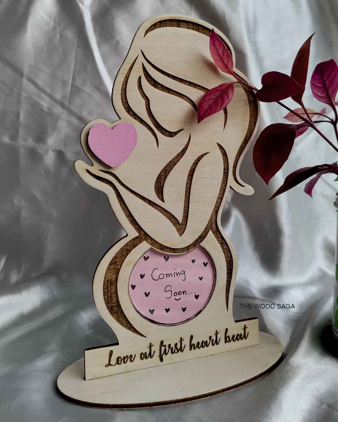 This beautifully crafted frame is the perfect keepsake for moms-to-be. Designed in the elegant silhouette of a pregnant woman, it holds a cherished photo or sonography report photo capturing the special journey of motherhood. Personalize it with a name or a special message to make it even more meaningful!