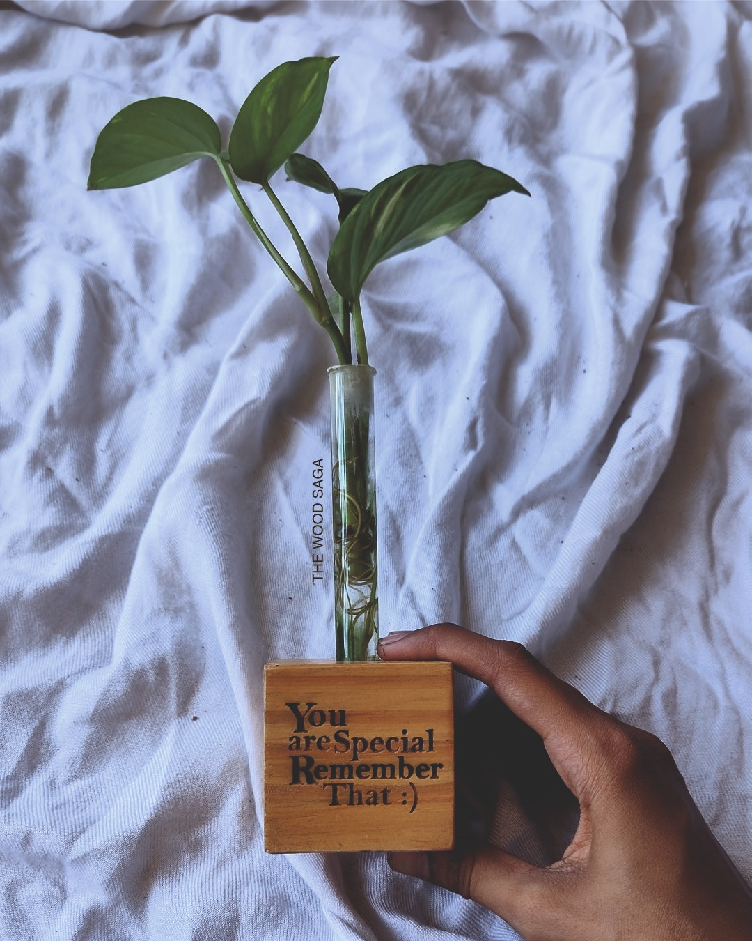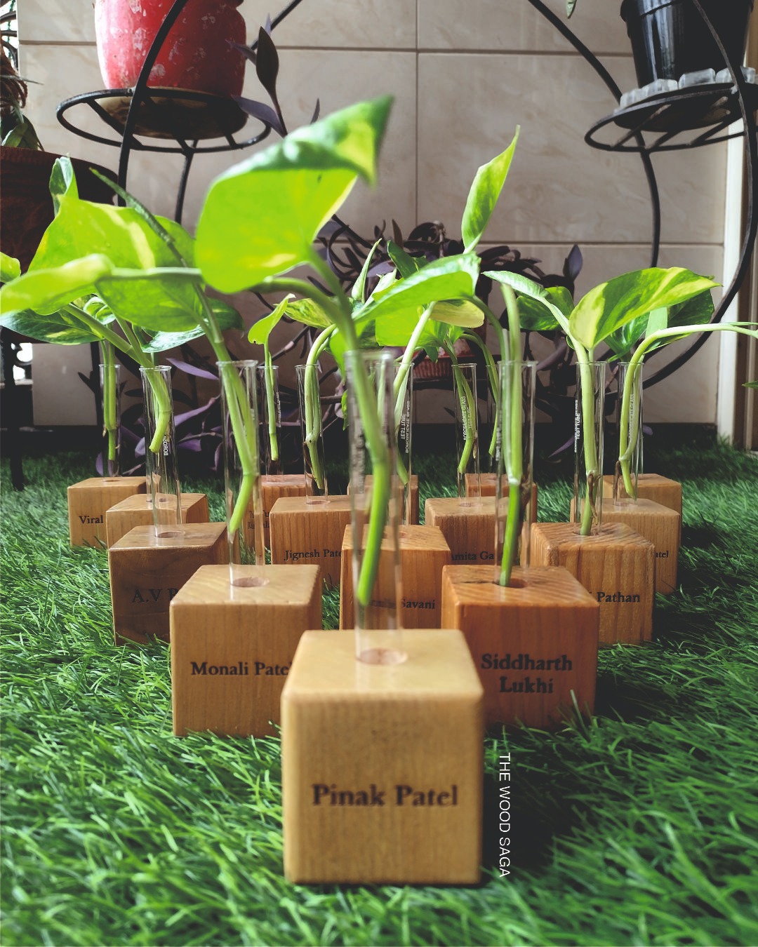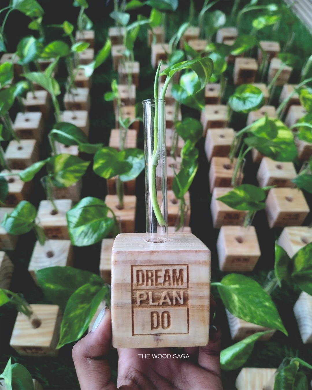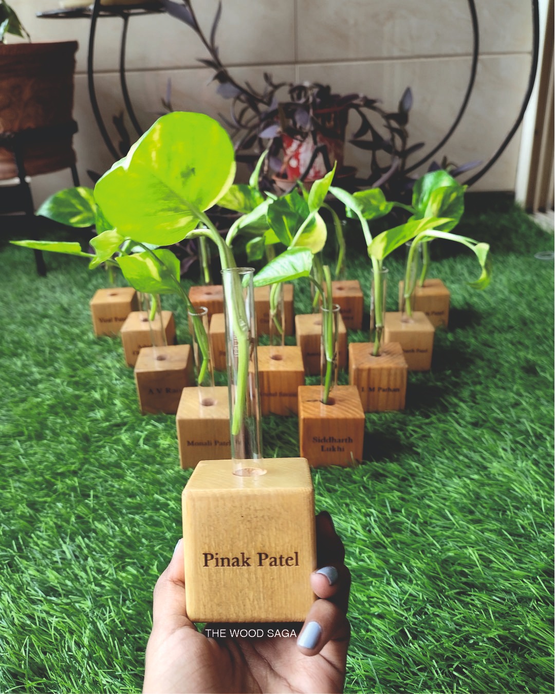 Our handcrafted tabletop planter is more than just décor — it’s a little reminder of joy and self-love. Thoughtfully designed with a test tube planter and a wooden base that can be engraved with a name or an uplifting affirmation, Whether it’s a motivational quote, a daily affirmation, or simply your name, this little green companion is here to brighten your day.