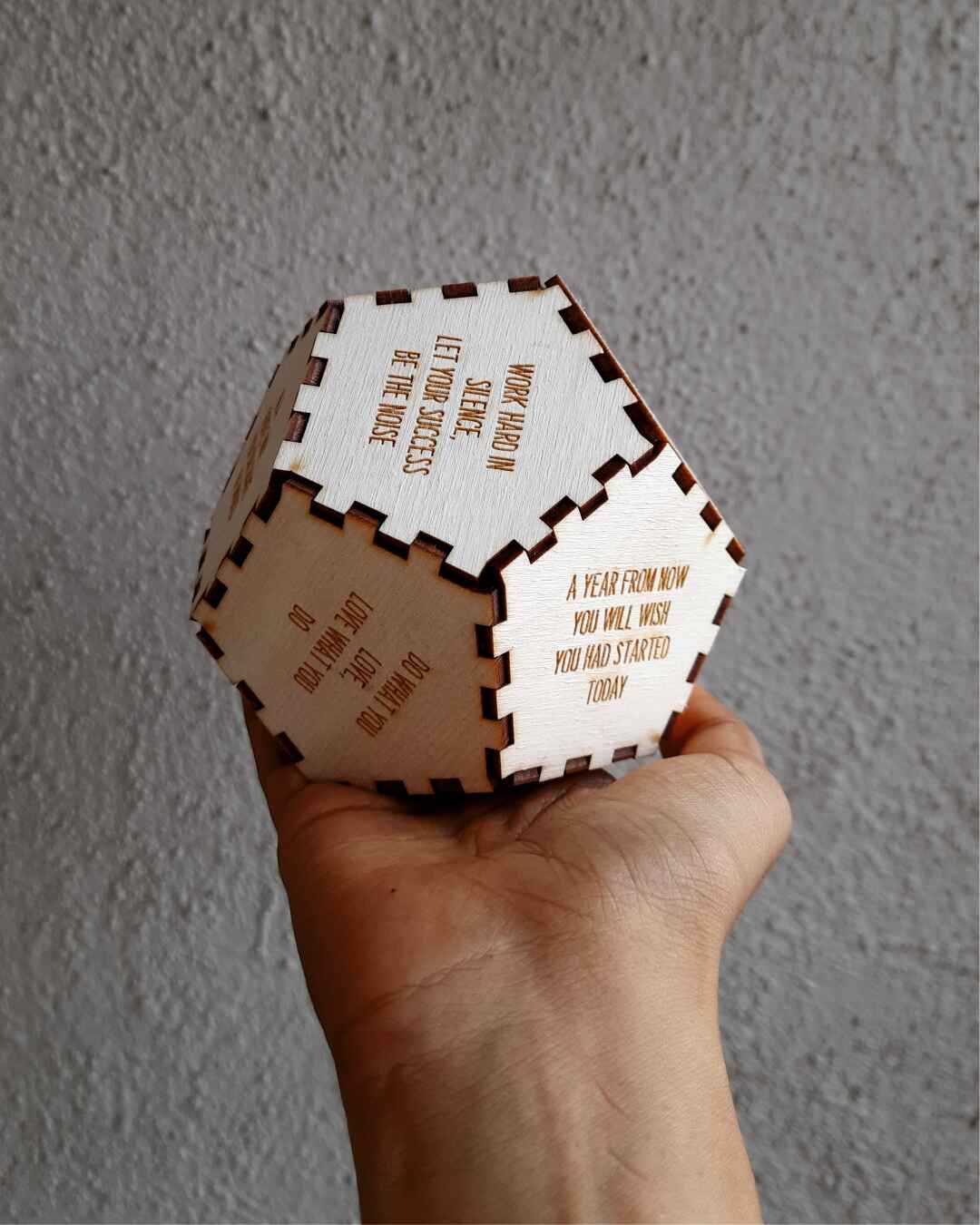 Bring inspiration to your space with our Wooden Quote Hexagon. Crafted from premium wood and engraved with motivational quotes, it’s the perfect desk or decor piece to keep you motivated every day.