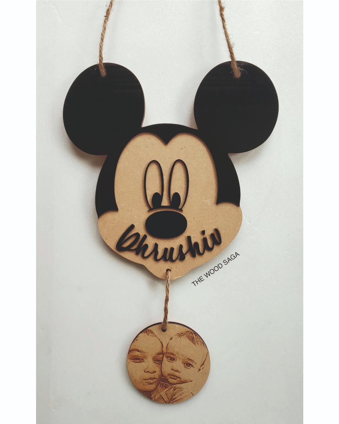 Add a touch of magic to your space with this cute Mickey-themed name hanging featuring a custom photo engraving. A perfect gift for kids and Disney lovers !