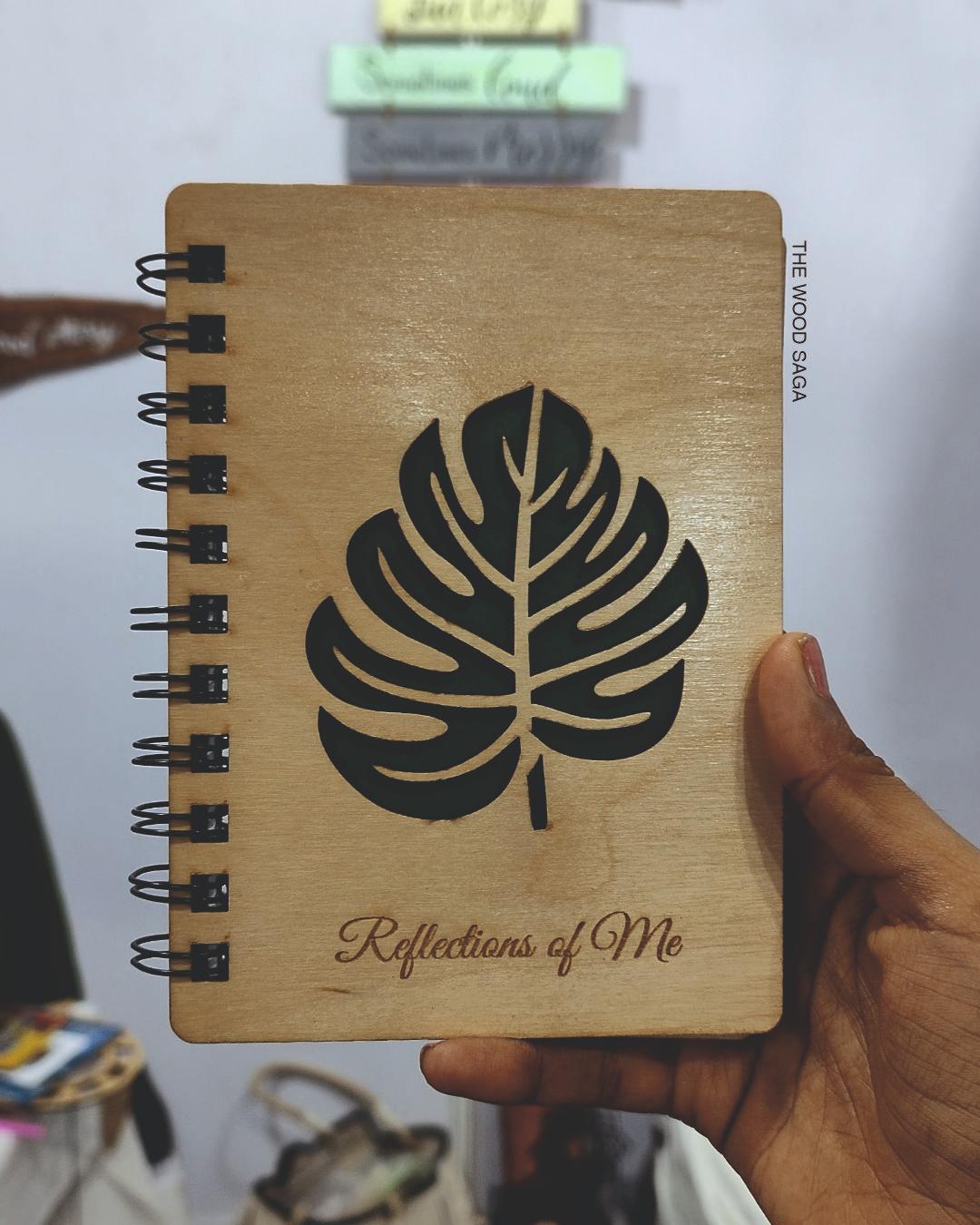 Bring a touch of nature to your journaling with the Reflections of Me diary, featuring a striking Monstera leaf cutout on a smooth wooden cover. Symbolizing growth, renewal, and self-expression, the Monstera design adds an earthy elegance to this unique, spiral-bound notebook.