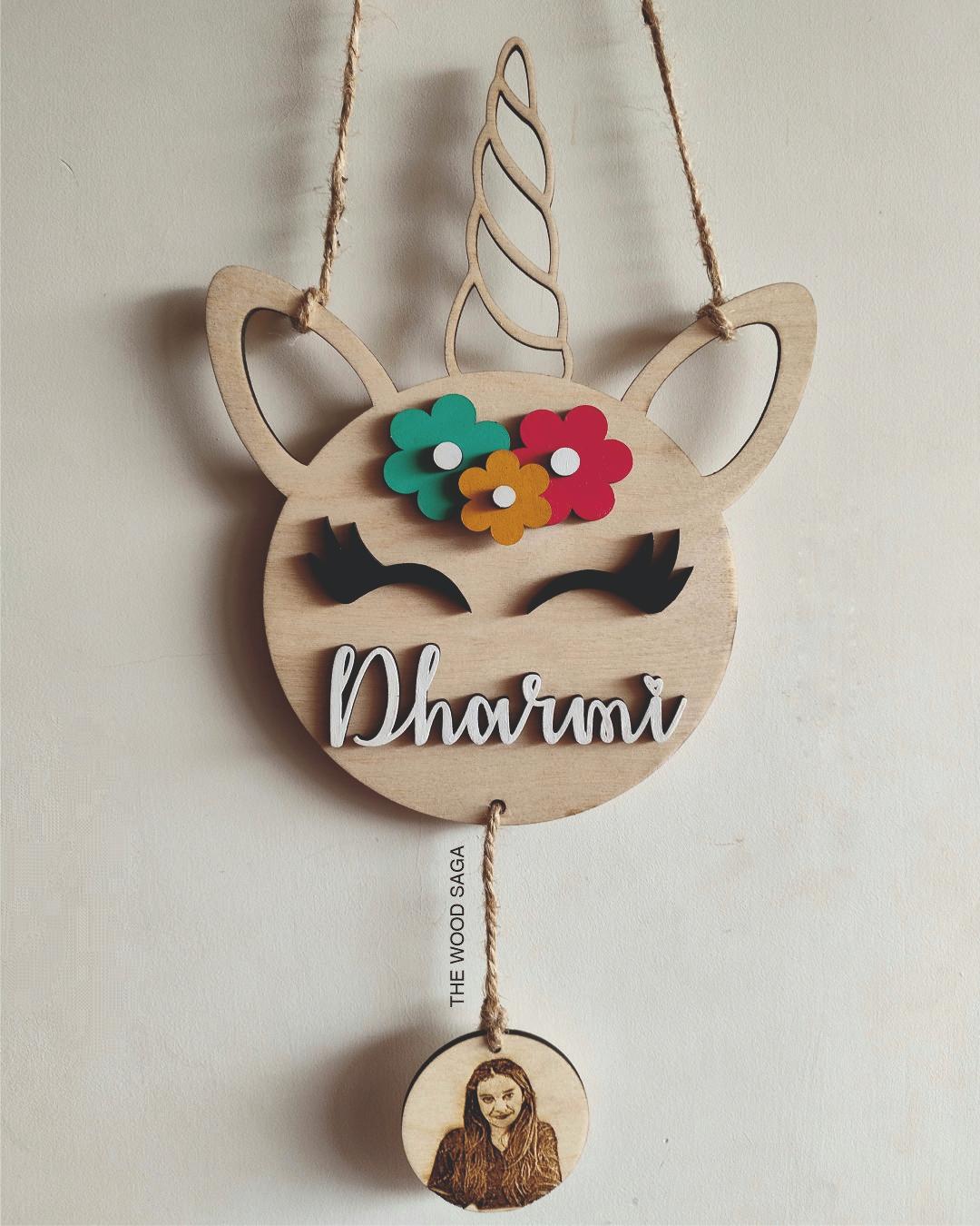 Our Personalized Unicorn Wall Hanging is a dreamy blend of whimsy and love — customized with your child’s name and a beautifully engraved photo. Adorned with colorful flowers and crafted from premium wood, it’s a charming keepsake that brightens up any nursery, kids’ room, or play corner.
