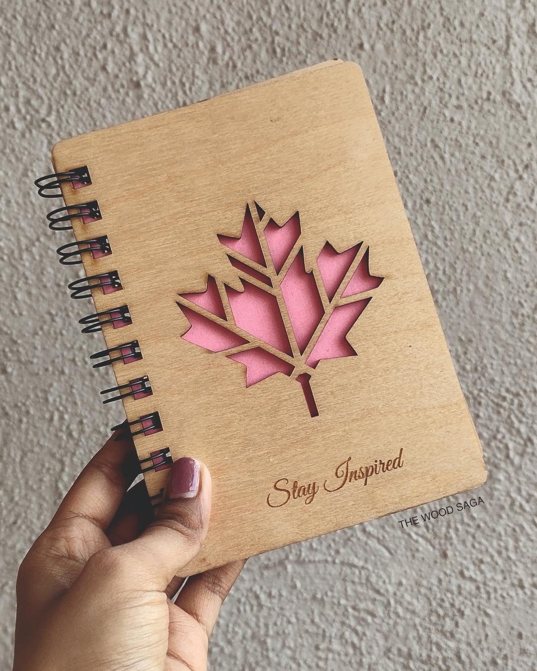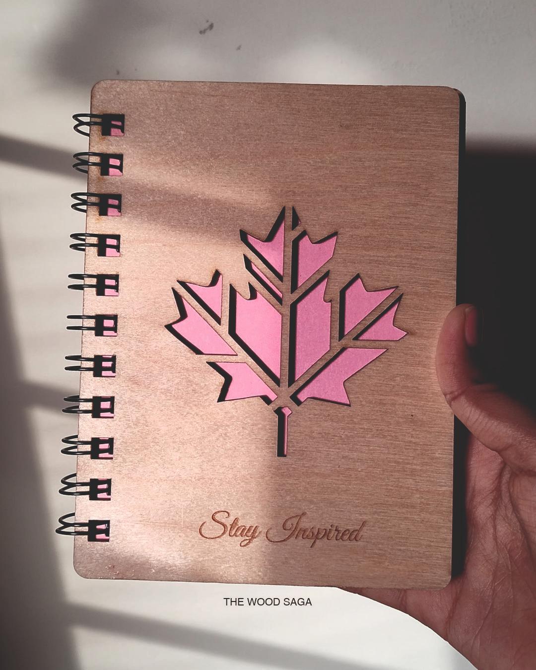 With a laser-cut maple leaf design symbolizing strength, change, and beauty in every season, this handcrafted wooden diary is your everyday dose of motivation. The warm pink backdrop adds a soft, empowering charm—perfect for capturing dreams, notes, or sketches.