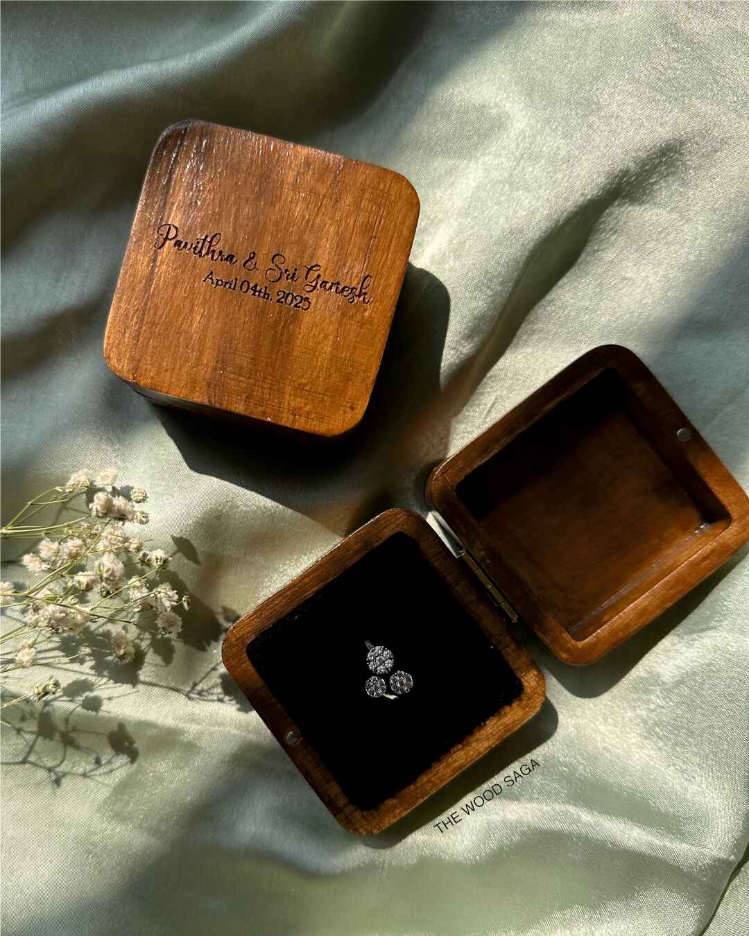 Make your special moment even more memorable with our customised wooden ring box. Crafted from natural wood and engraved with your names and date, this beautiful keepsake is perfect for proposals, weddings, and anniversaries. A timeless way to treasure your love story forever.