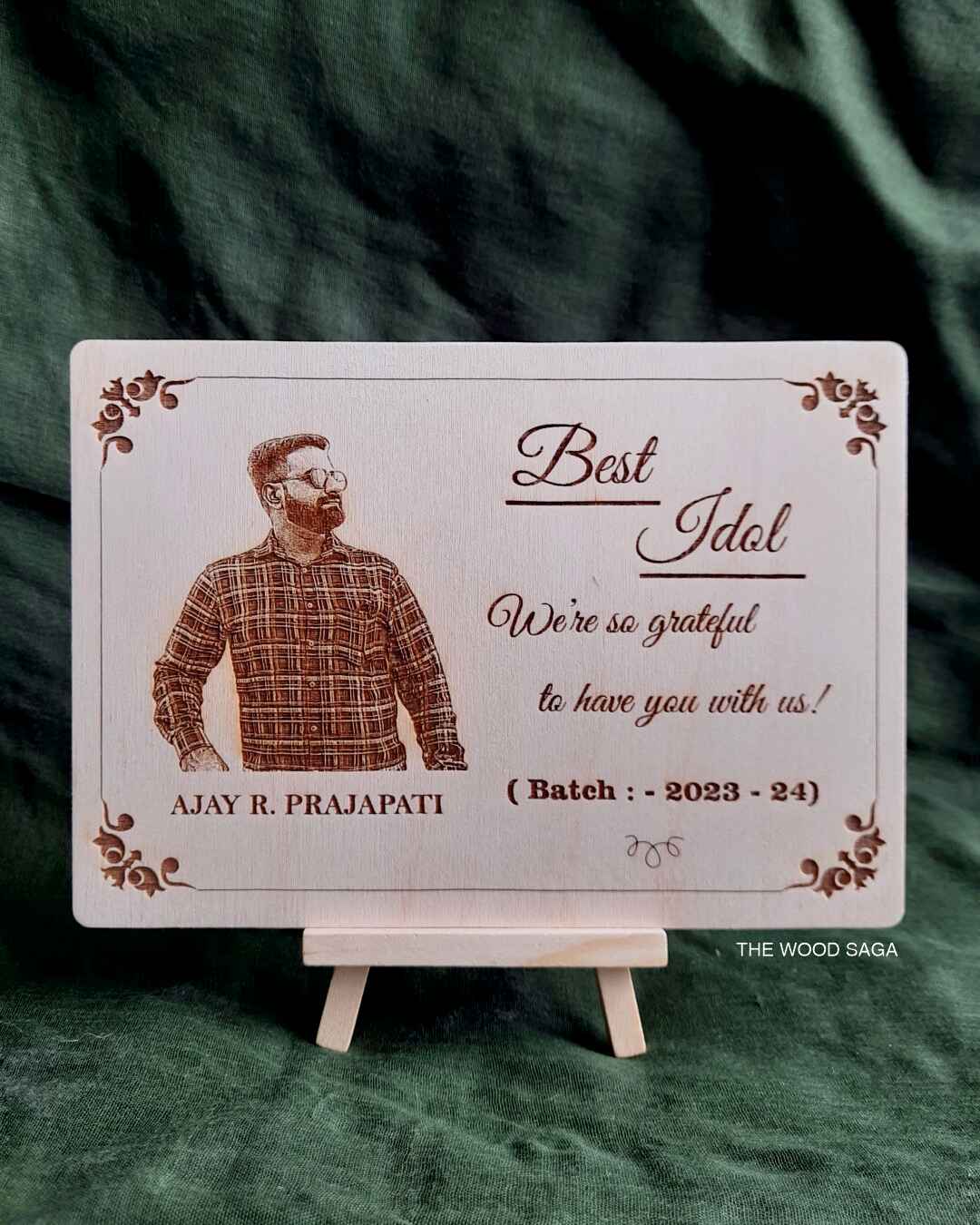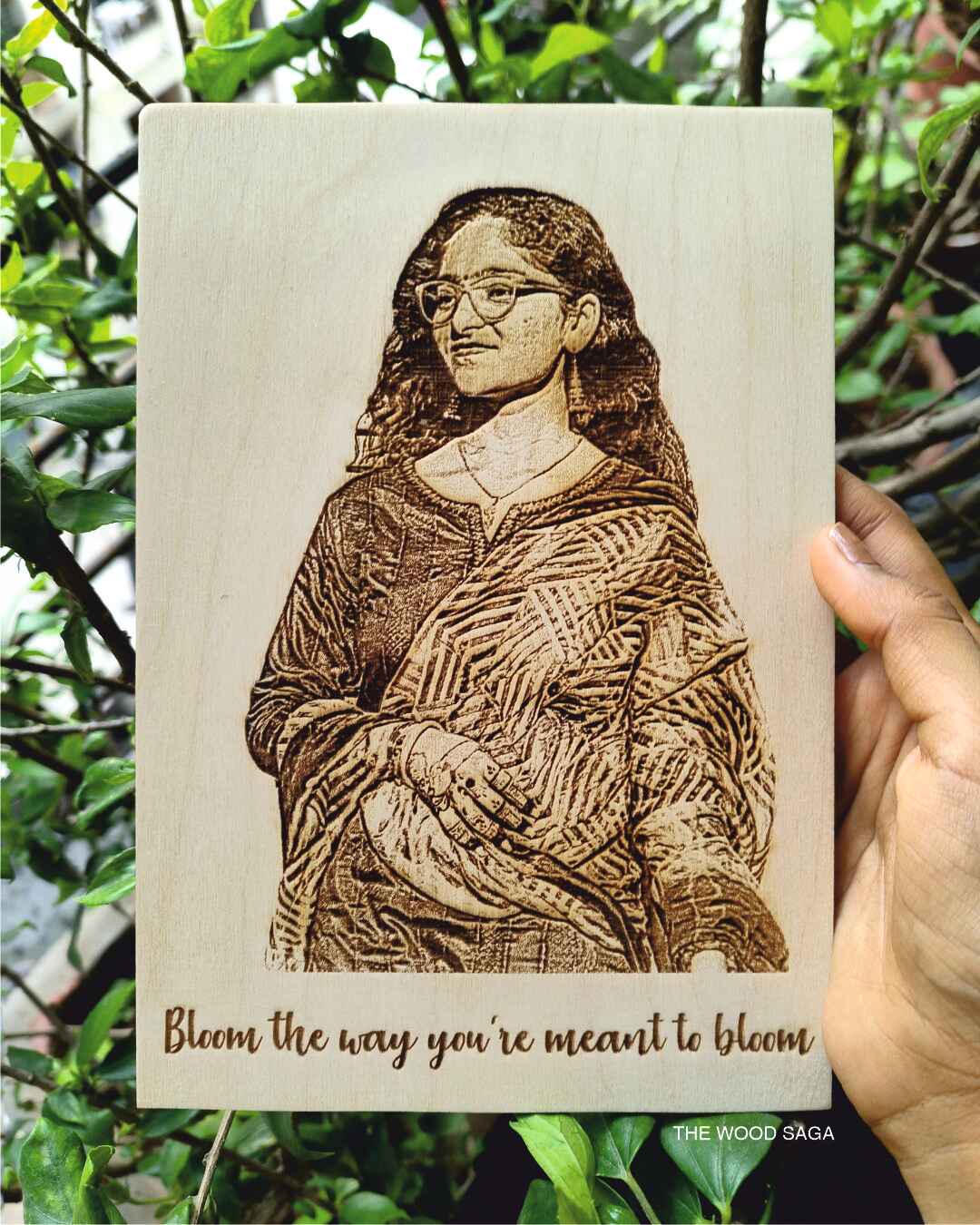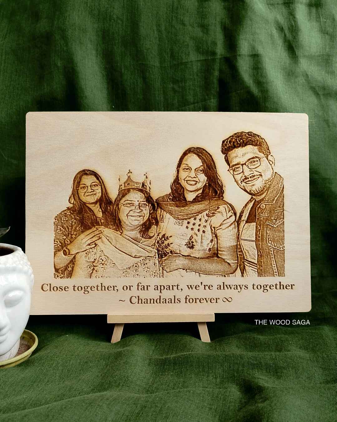 Capture your cherished moments in a unique and timeless way with our Photo Frame. This frame is engraved with your favorite photograph, turning it into a lasting memory. Designed with a sturdy stand, this frame can be elegantly displayed on desks, shelves, or bedside tables. Our custom wooden frame adds warmth and sentiment to any space.