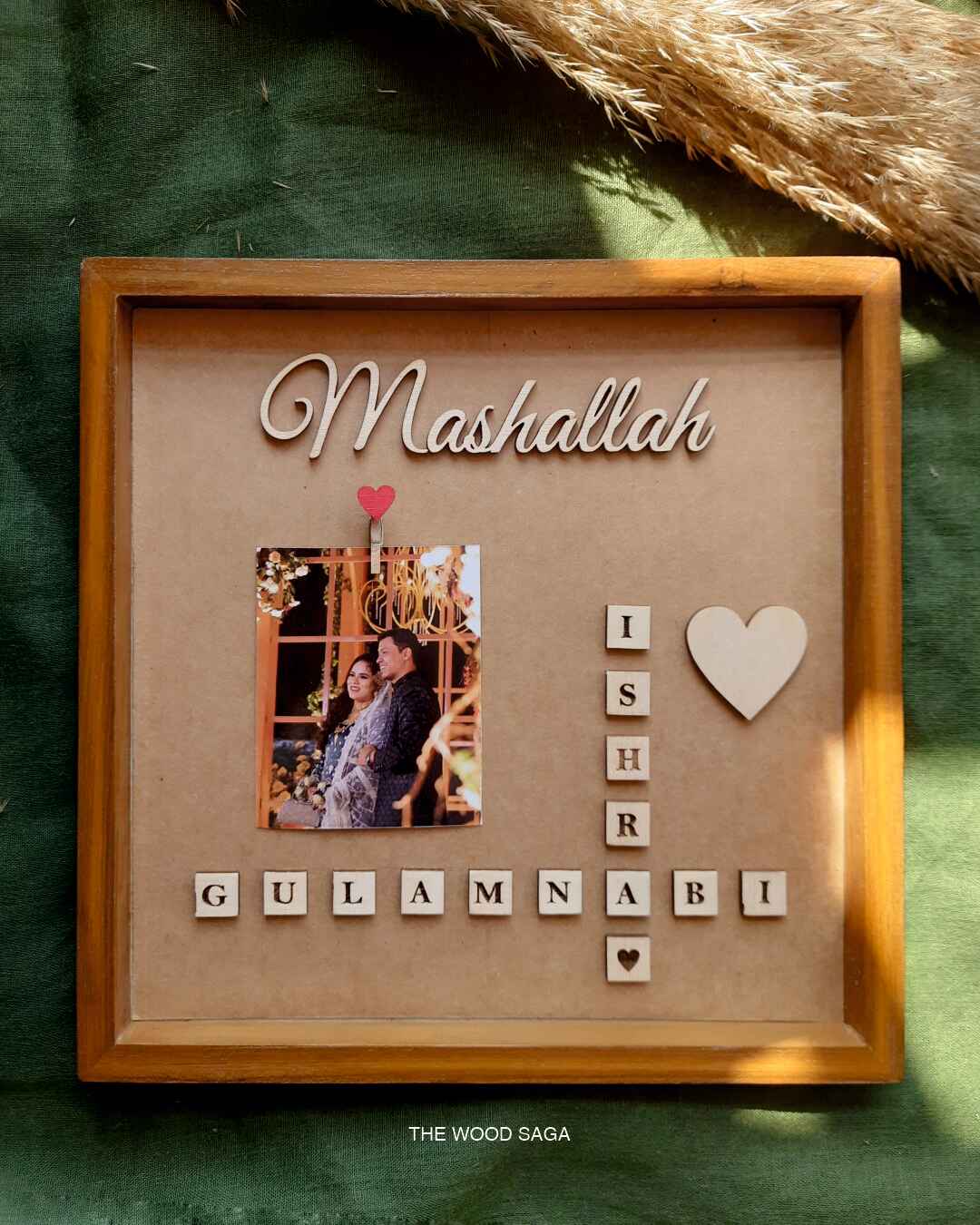 Capture love and memories with our Scrabble-Inspired Wooden Photo Frame! Featuring custom wooden letter tiles, a cherished photo, and heartfelt details like Mashallah, this frame is a perfect keepsake for weddings, anniversaries, or special gifts.Â