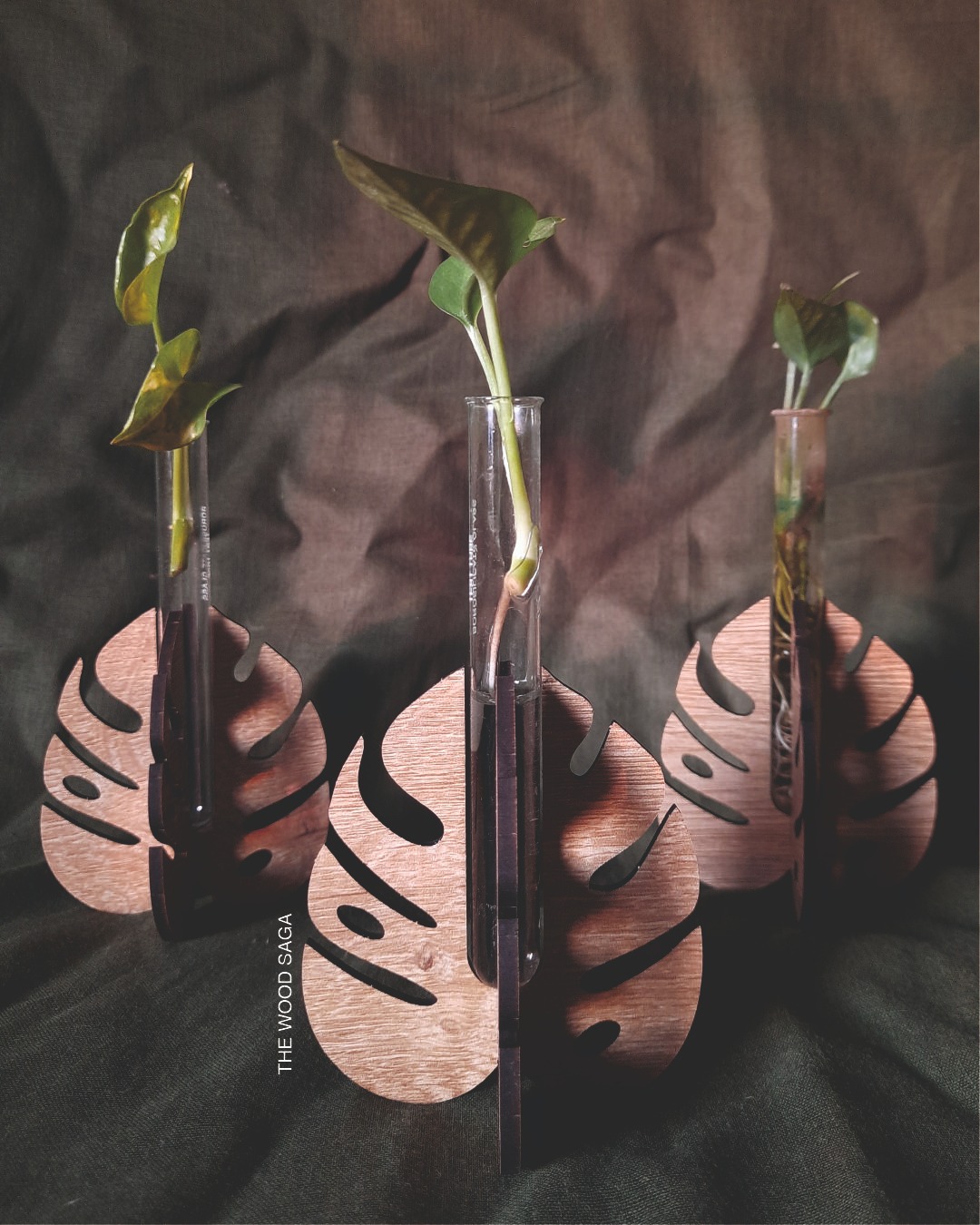 Our Monstera Leaf Tabletop Planter is a perfect blend of nature and design. Crafted from sustainable wood and paired with a clear glass test tube, it beautifully holds plant cuttings while adding a hint of green elegance to your desk, shelf, or windowsill.