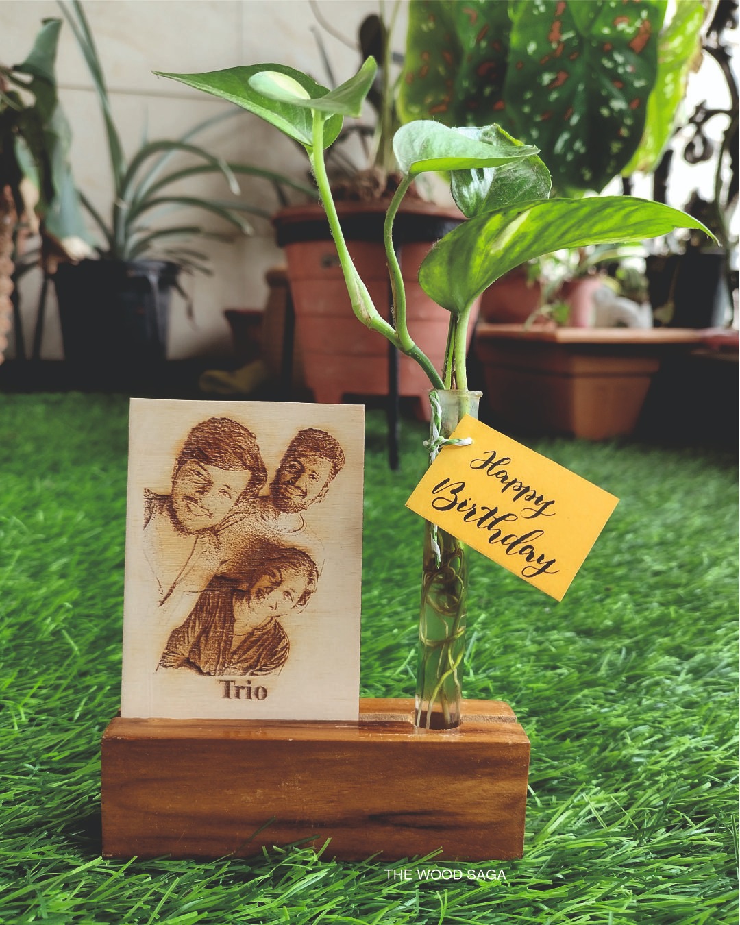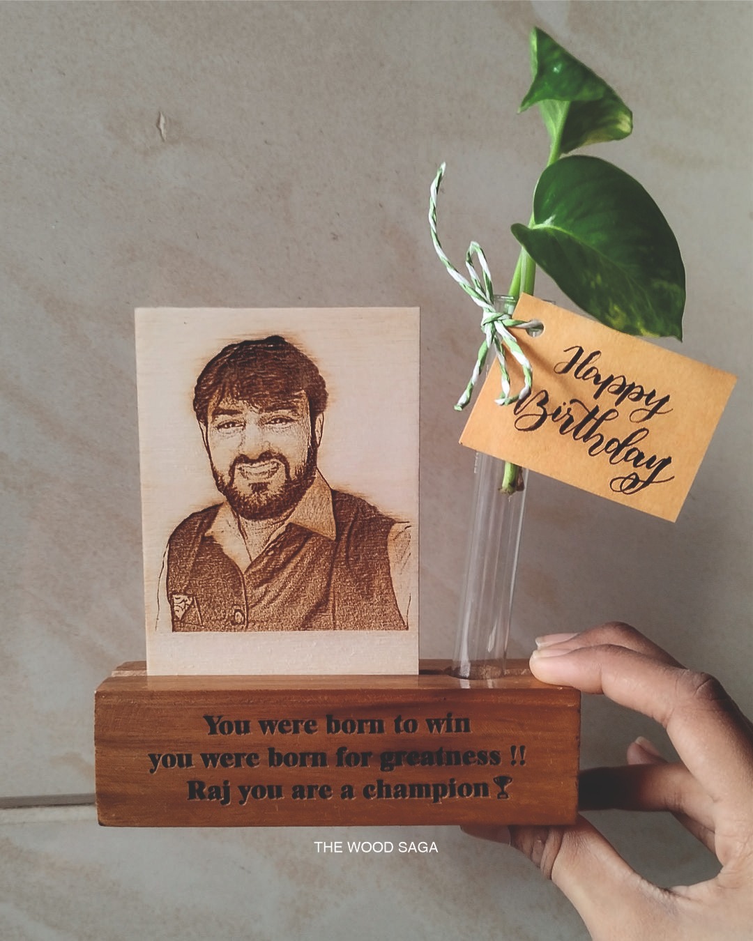 This handcrafted wooden tabletop planter holds more than just a plant—it holds a moment. With a personalized photo engraved on wood and a minimalist glass planter, it’s a beautiful reminder that love, like nature, grows with care. A thoughtful gift for loved ones or a meaningful addition to your own space.