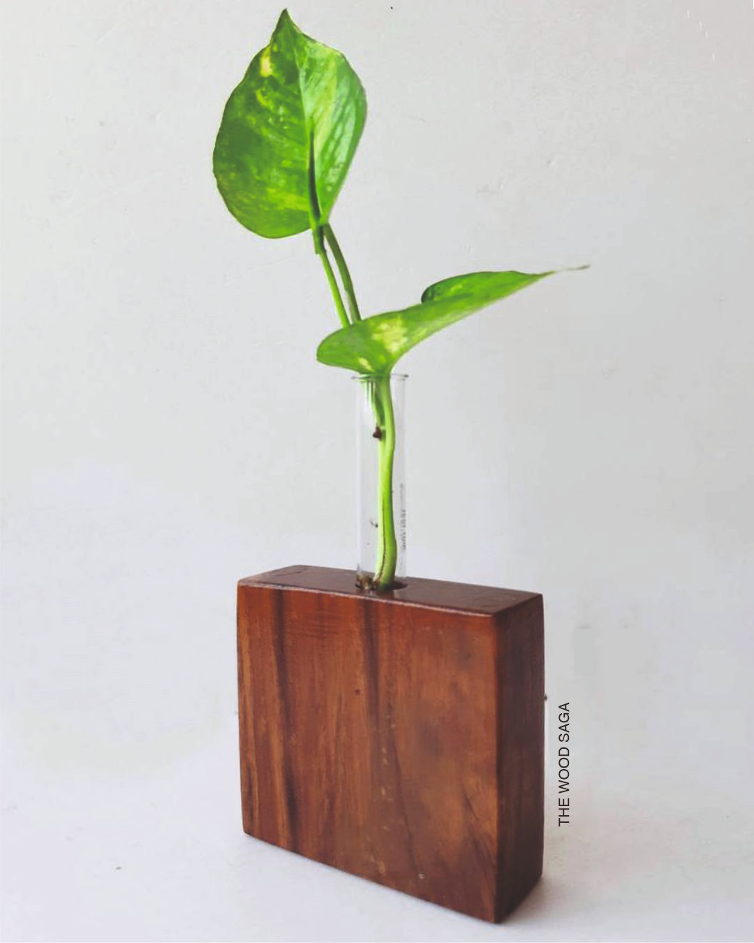 This elegant set of three tabletop planters, handcrafted from rich Saag wood, is the perfect fusion of minimal design and natural beauty. Each planter holds a sleek glass tube ideal for hydroponic plants, cuttings, or minimalist floral arrangements. Whether styled on your desk, shelf, or coffee table, this combo adds warmth and greenery to any space — naturally and sustainably. Perfect gift for plant lover.