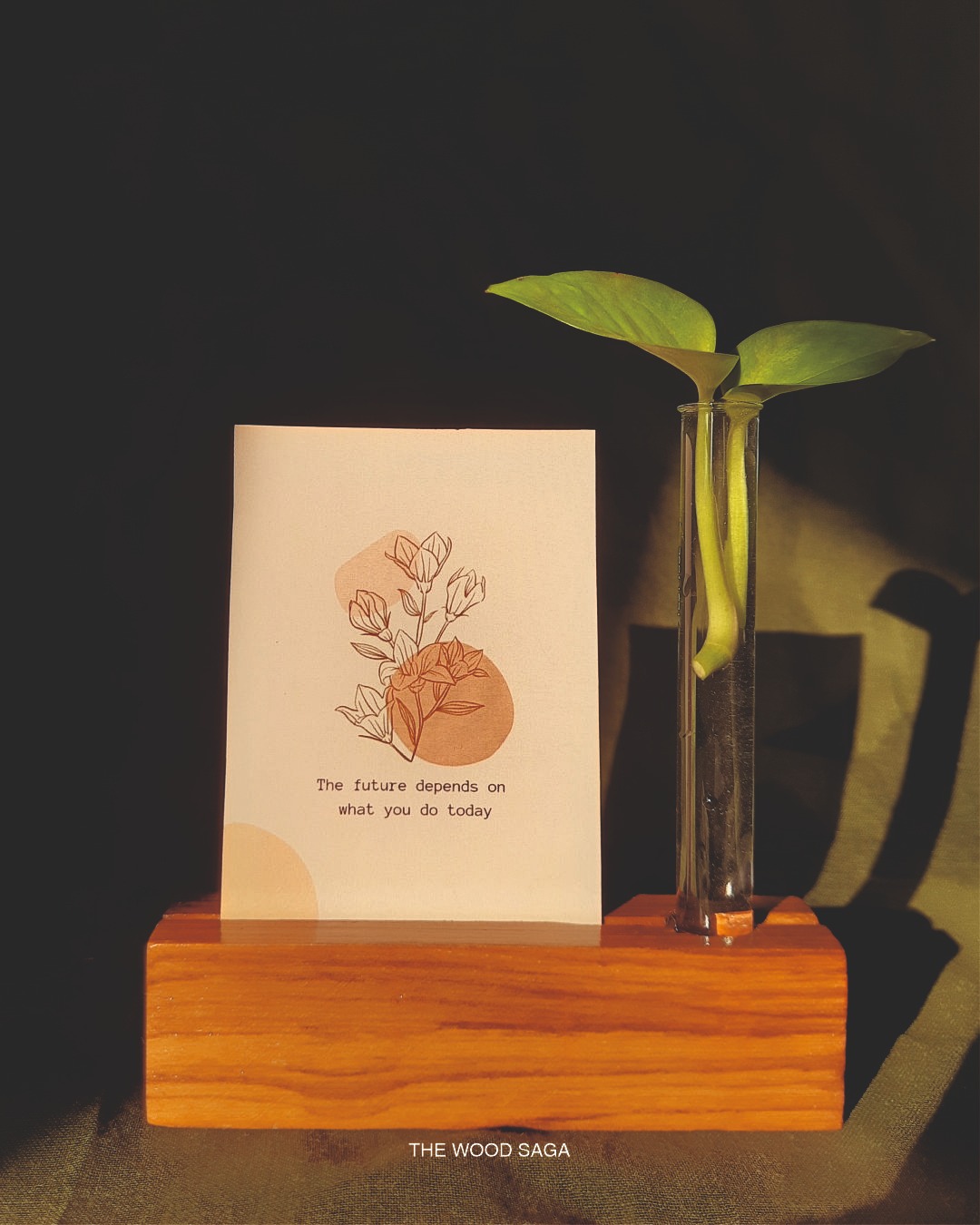 “Brighten your space and your spirit with our wooden tabletop planter – thoughtfully paired with a meaningful quote or affirmation card. A perfect blend of nature and inspiration for your desk or gift!“
