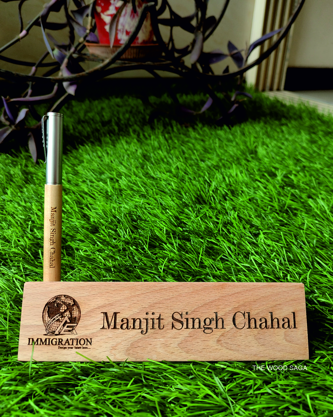 Add a touch of elegance to your workspace with our Personalized Wooden Nameplate with Pen Holder. this minimalist yet stylish accessory is designed to keep your desk organized while showcasing your name with a beautiful laser engraving. The triangle-shaped holder securely holds the eco-friendly wooden pen, making it both decorative and practical. Ideal for professionals, corporate gifts, or personalized office décor.