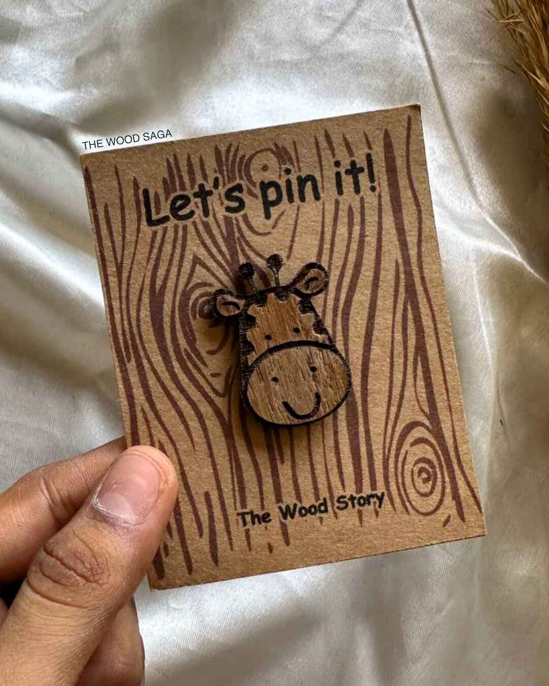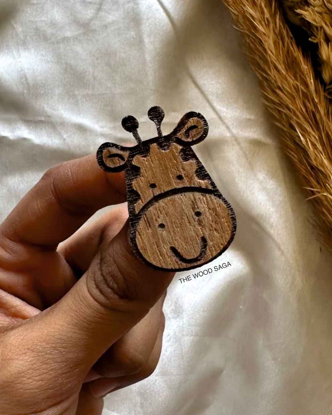 This adorable giraffe brooch, crafted from sustainable recycled wood, brings a fun and eco-friendly charm to your everyday look. Lightweight, cheerful, and full of character, it’s perfect for adding a playful touch to bags, jackets, or gifts.