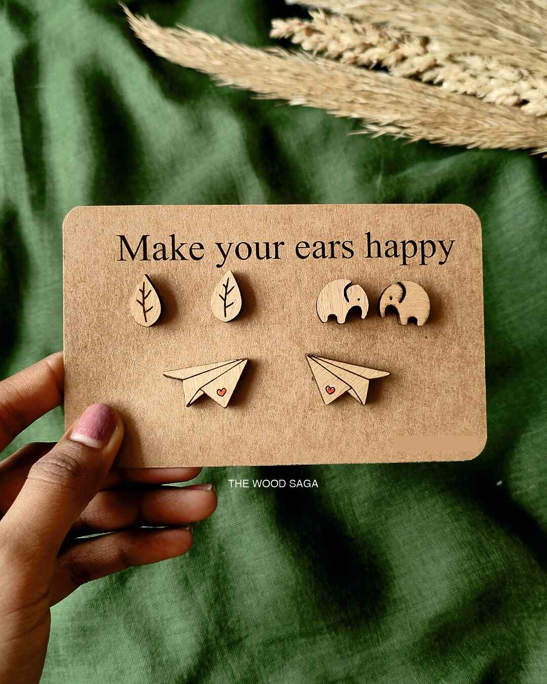 lightweight, eco-friendly, and intricately engraved, these wooden stud earrings add a subtle yet charming touch to your look.