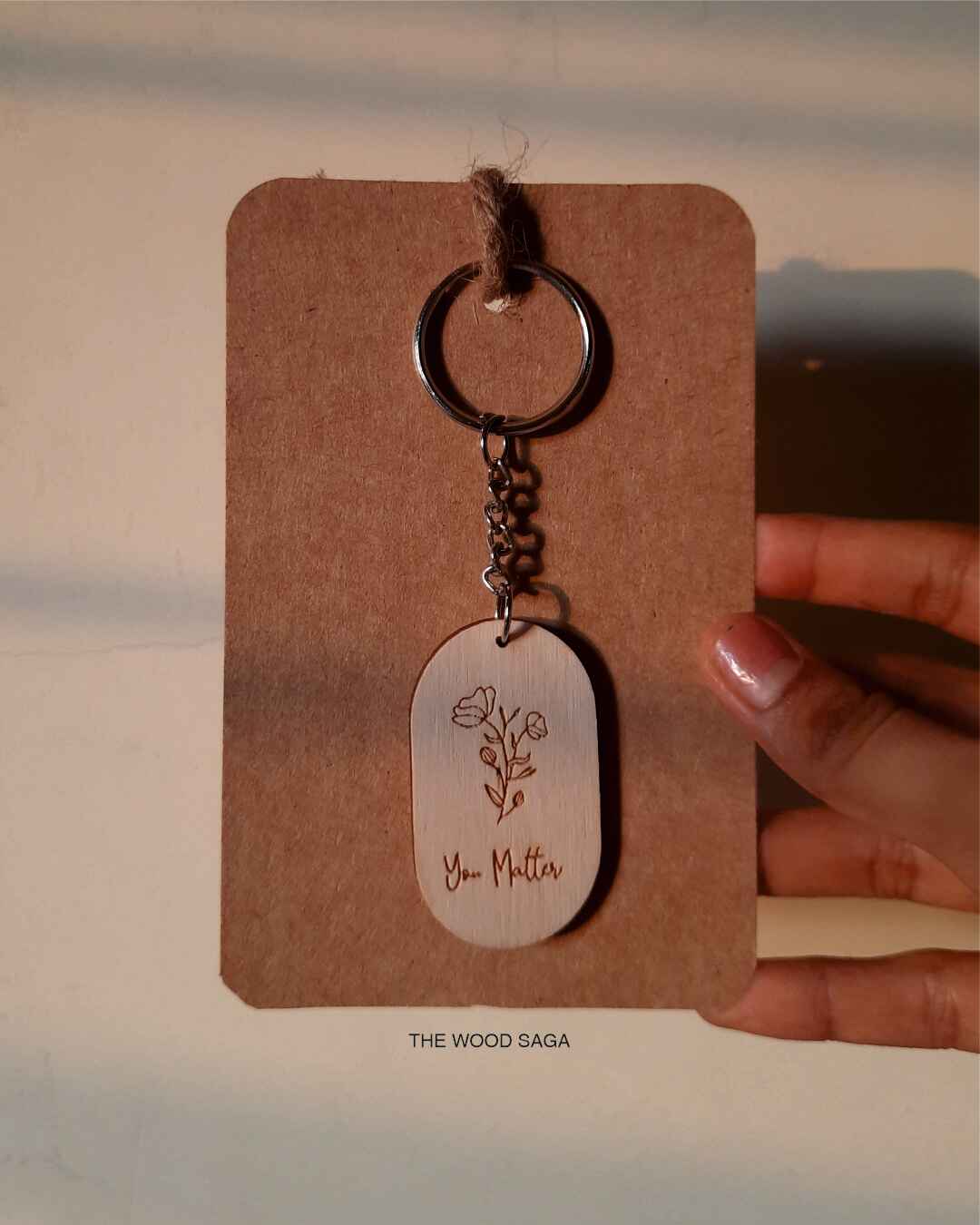 A gentle reminder you can carry every day — this elegant wooden keychain features a delicate floral engraving with the words “You Matter”. Thoughtfully crafted to uplift and inspire, it makes for a heartfelt gift or a meaningful keepsake.